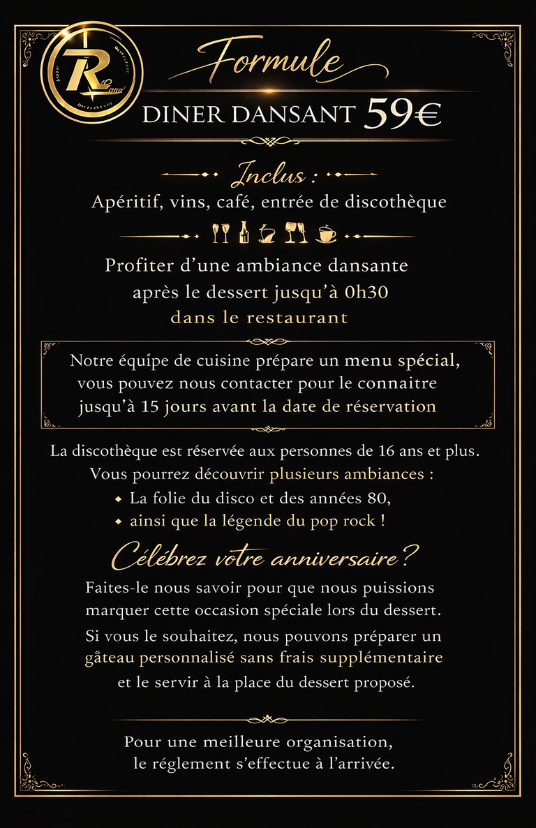 Pour une meilleure organisation, nous vous remercions de respecter l'heure qui vous est attribuée lors de votre soirée.