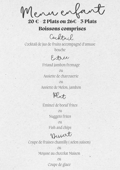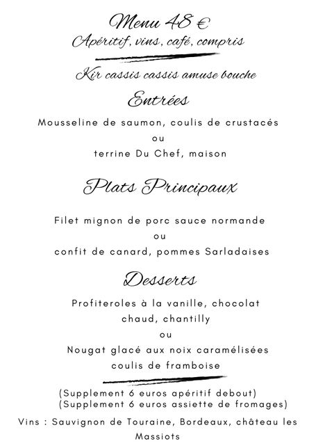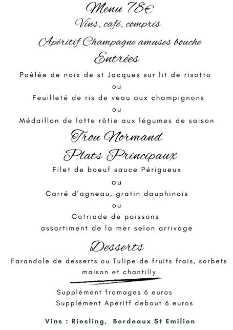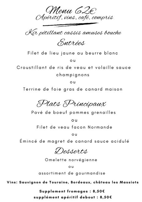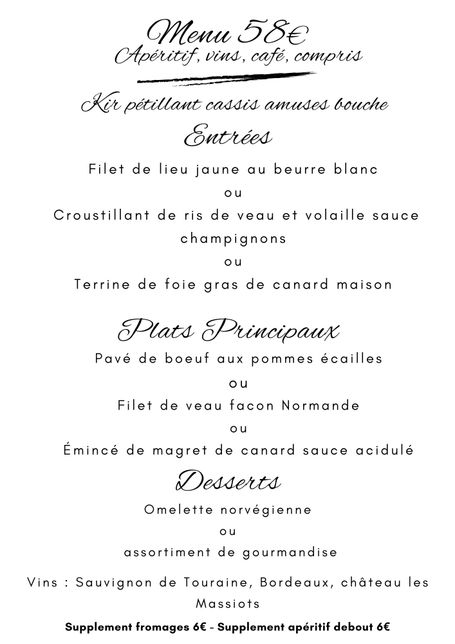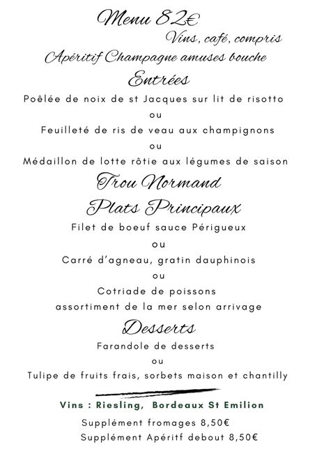 Pour le samedi soir voir notre formule unique  (diner dansant) 58 €/pers.